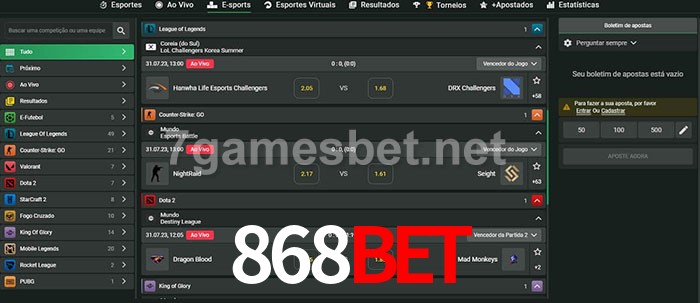O 868bet oferece uma grande seleção de opções de apostas em e-sports com probabilidades competitivas